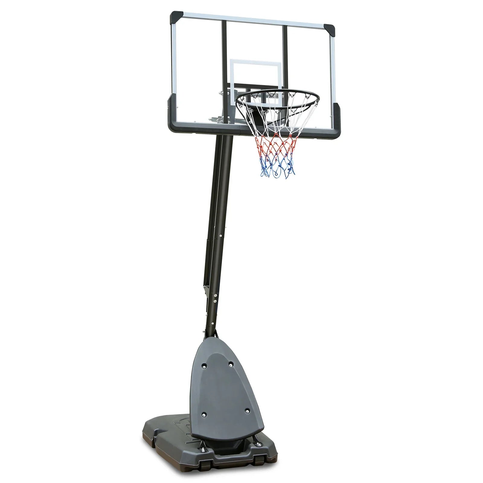 • High-quality materials:The profession Basketball system is constructed of heavy-duty steel, durable polycarbonate backboard, and an all-weather nylon net. This basketball hoop is designed to last through many basketball seasons, and the transparent shatterproof polycarbonate backboard, enough to handle the most intense competition and bad weather.