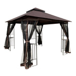 10 x 10 ft Patio Gazebo Tent with Ventilated Double Roof and Mosquito Net, Brown Canopy for Backyard or Garden