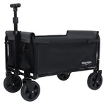 All-in-One Convertible Folding Camping Wagon Cart: Bench Seat, Storage Compartment & Included Dog Tether, Black/Gray