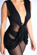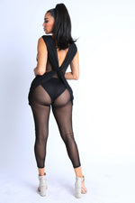 Sexy Sleeveless Lightweight Draped Mesh Jumpsuit Party Clubwear BLACK
