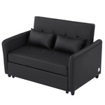 This multifunctional sofa bed offers a seamless transition between a cozy loveseat and a guest bed, making it perfect for small spaces or multifunctional rooms. With a convenient pull-out mechanism and bottom pulley system, transforming it into a bed is quick and effortless. The right armrest features three USB charging ports, allowing you to charge your devices without leaving the comfort of the couch. Built with a sturdy hardwood frame and cushioned with breathable PU leather and high-density foam, the sofa provides durable support for up to 400 lbs. Its sleek, minimalist design fits effortlessly into any room, and its compact size makes it ideal for apartments, dorms, or studios.