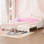Twin Extending Daybed with LED Lights, Modern Upholstered Princess Daybed With Crown Headboard,White