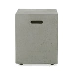 Mesa auxiliar moderna con soporte para tanque de óxido de magnesio y superficie lisa de hormigón en gris claro