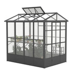 Invernadero de policarbonato de 1,9 x 2,4 m con ventilación con control de temperatura totalmente automático, de aluminio resistente para exteriores con 2,3 m de altura adicional para jardín y patio, gris oscuro.