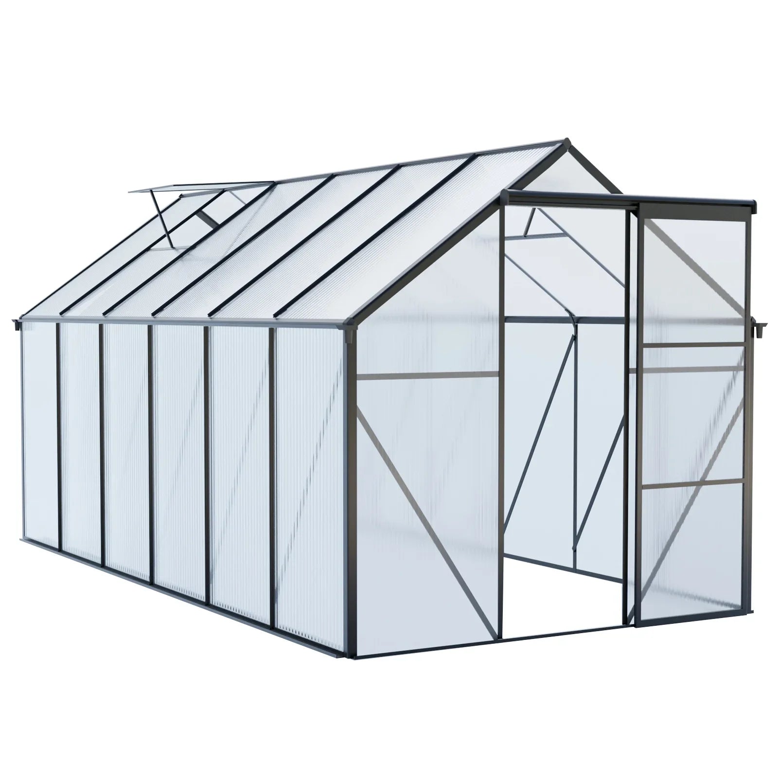 Invernadero de policarbonato negro resistente con base elevada y anclaje, 1,8 x 3,6 m, estructura de aluminio