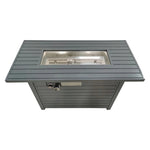 Mesa para fogata de acero al propano para exteriores con tapa, acabado resistente al calor, gris, 28 cm de alto x 107 cm de largo